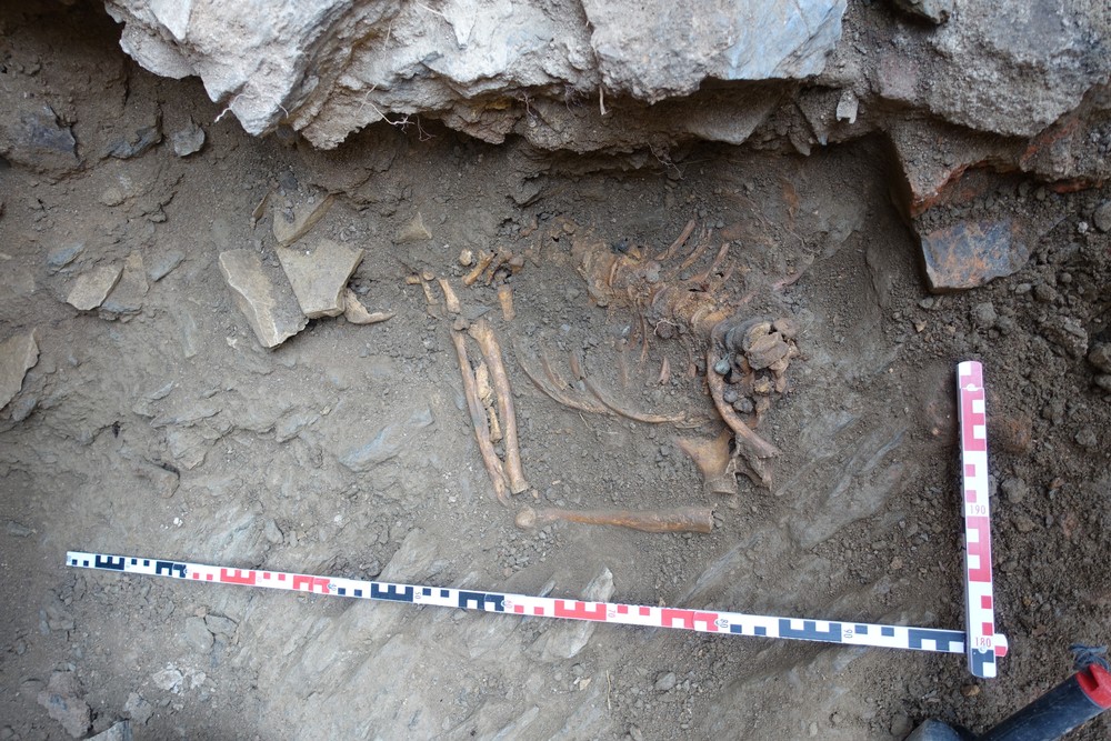 Kostra byla nalezena 10. 12. 2020. Přes nepříznivé podmínky (- 5°C, výzkum ve stísněném prostředí pod schody) byla pečlivě vypreparována, zdokumentována, vyzvednuta a předána do Západočeského muzea v Plzni k antropologickému vyhodnocení a konzervaci nálezů. Předpokládáme návrat celku do areálu kláštera. Hrobová jáma byla zpět zasypána a nad hrobem povede nové schodiště z prelatury do rajského dvora, na místě jeho barokního předchůdce.